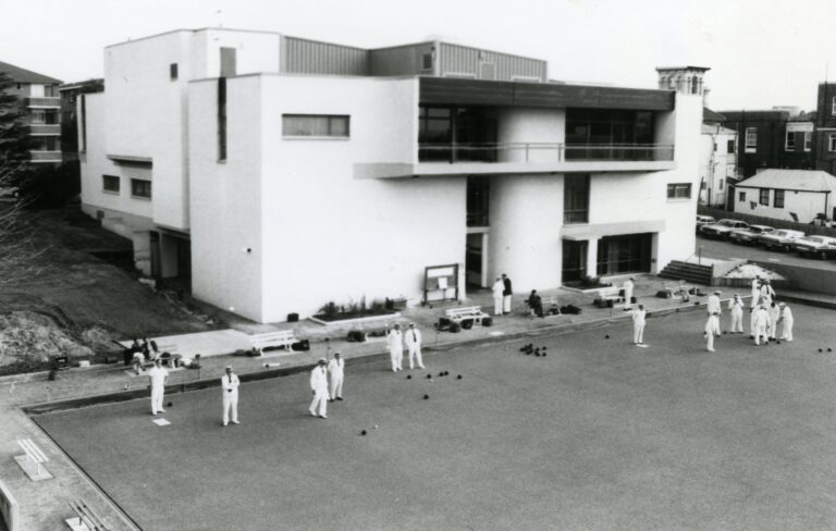Stanmore’s bowling green with games in progress.