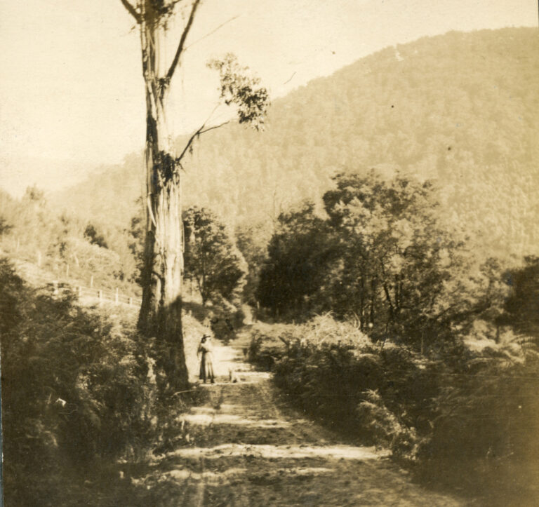 Daisy on the road from the Muir home, Warburton