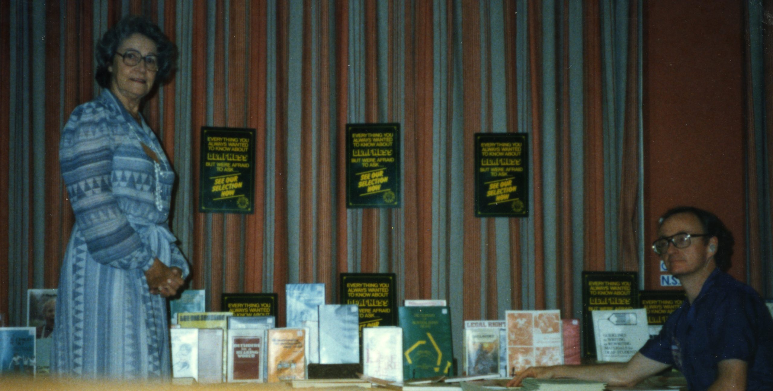 Deaf Action Books began in 1984 as a project of the ‘Concerned Deaf’ group in NSW, selling deaf-related books. It had an office and shop space in the Deaf Society of NSW building at Stanmore, soon moving into a space in the Gordon Davis Hostel next door. A few years later Deaf Action Books began selling technology items too, and changed its name to Deafness Resources Australia (DRA).