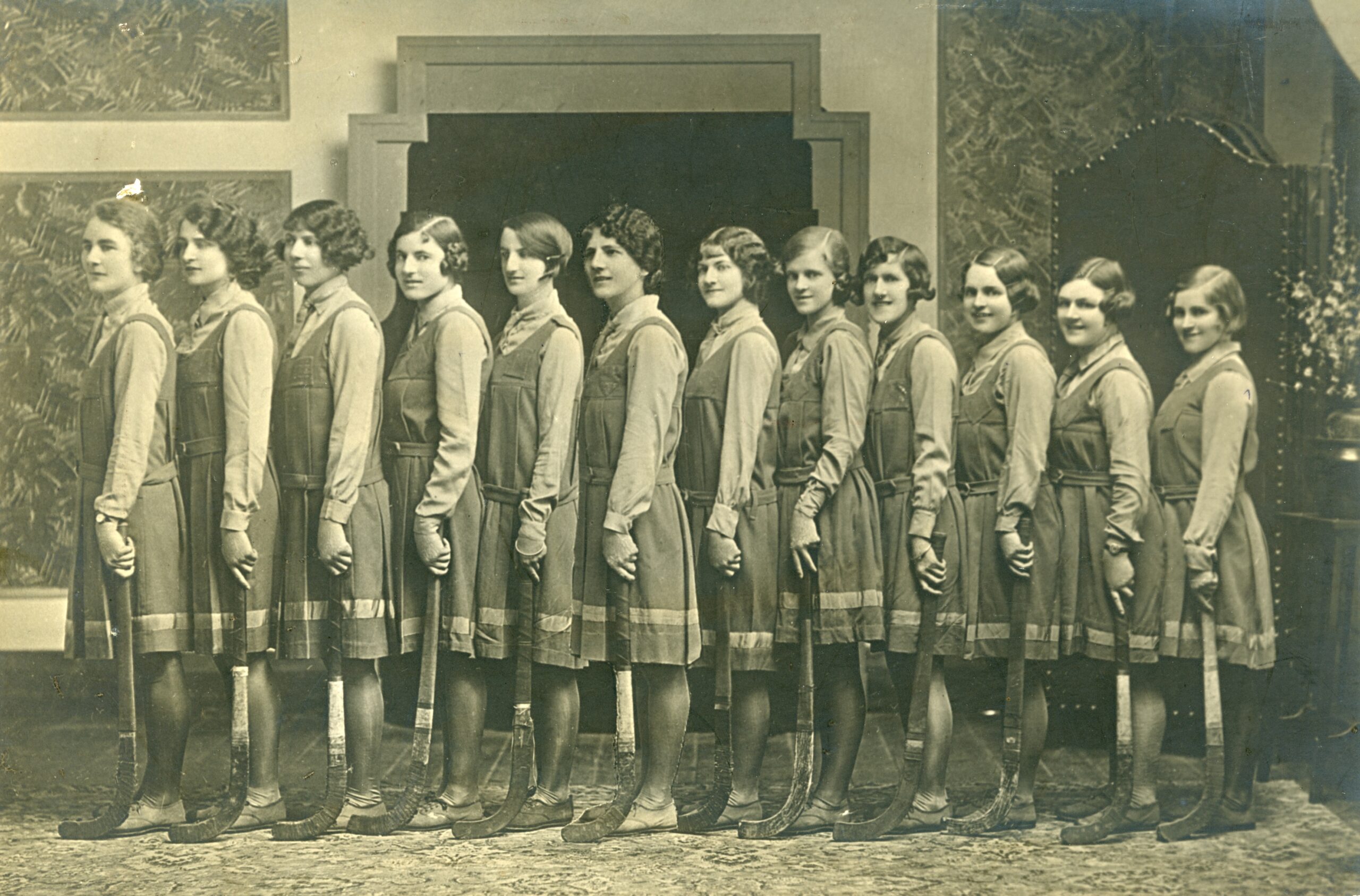 From the album of Jim and Eva Johnston, this photograph shows a deaf girls’ hockey team in the early 20th century, most likely at the Victorian Deaf and Dumb Institute in Melbourne.