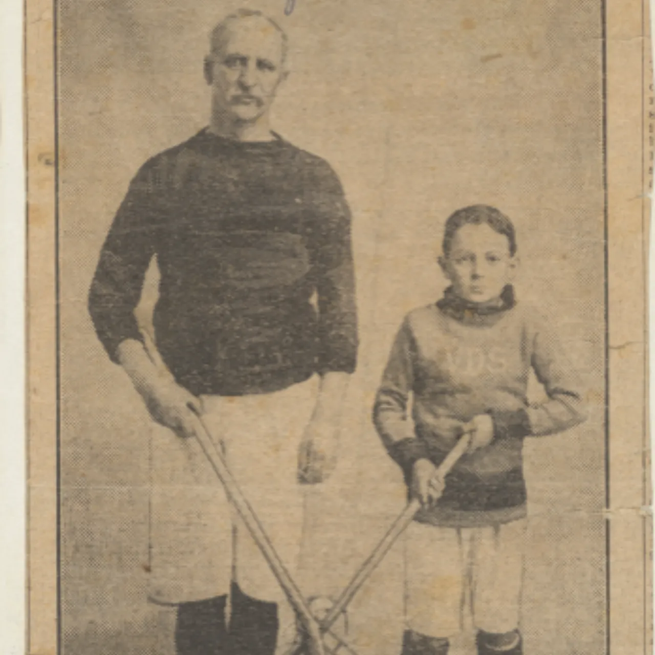 Photo of a 1916 Weekly Times newspaper clipping with the oldest and youngest lacrosse players in Victoria at the time – at 11 years old, the youngest is Willie Hately, who is Deaf