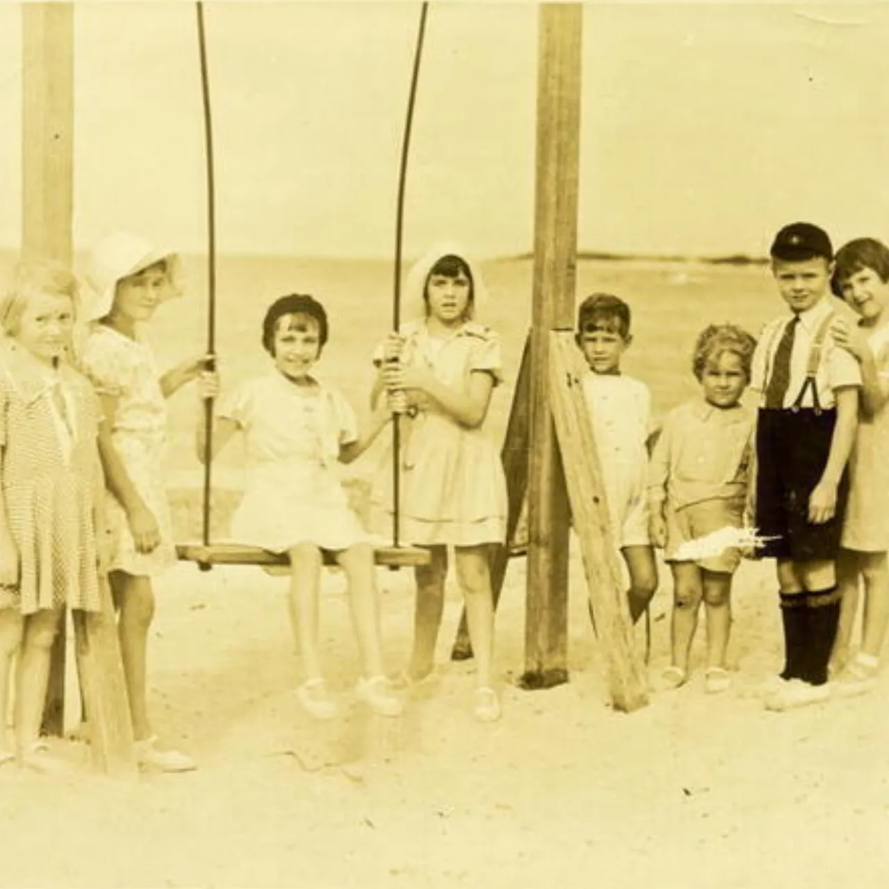 From The Grove Image Gallery description: “Children from the W.A. School for Deaf and Dumb Children playing on swings at Rottnest. L to R Pamela Hay, Sylvia Dodd, Elsie Doyle, Bonnie Harrison, John Love jnr., Douglas Love, Wyndham Cooper, Thelma Grose.”